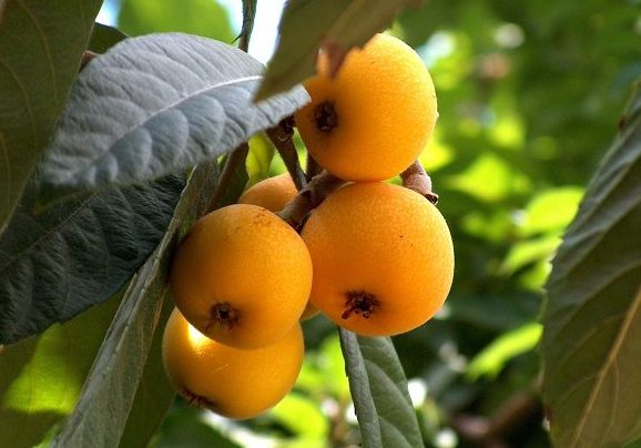 Japansk mispel (eriobotrya japonica) Ett relativt litet vintergrönt träd som oftast stannar på 3-4 meter. Det stammar från början i sydöstra Kina men men har sedan spridit sig till Japan där det odlats i tusentals år. Det har även spridit sig runt Medelhavet.